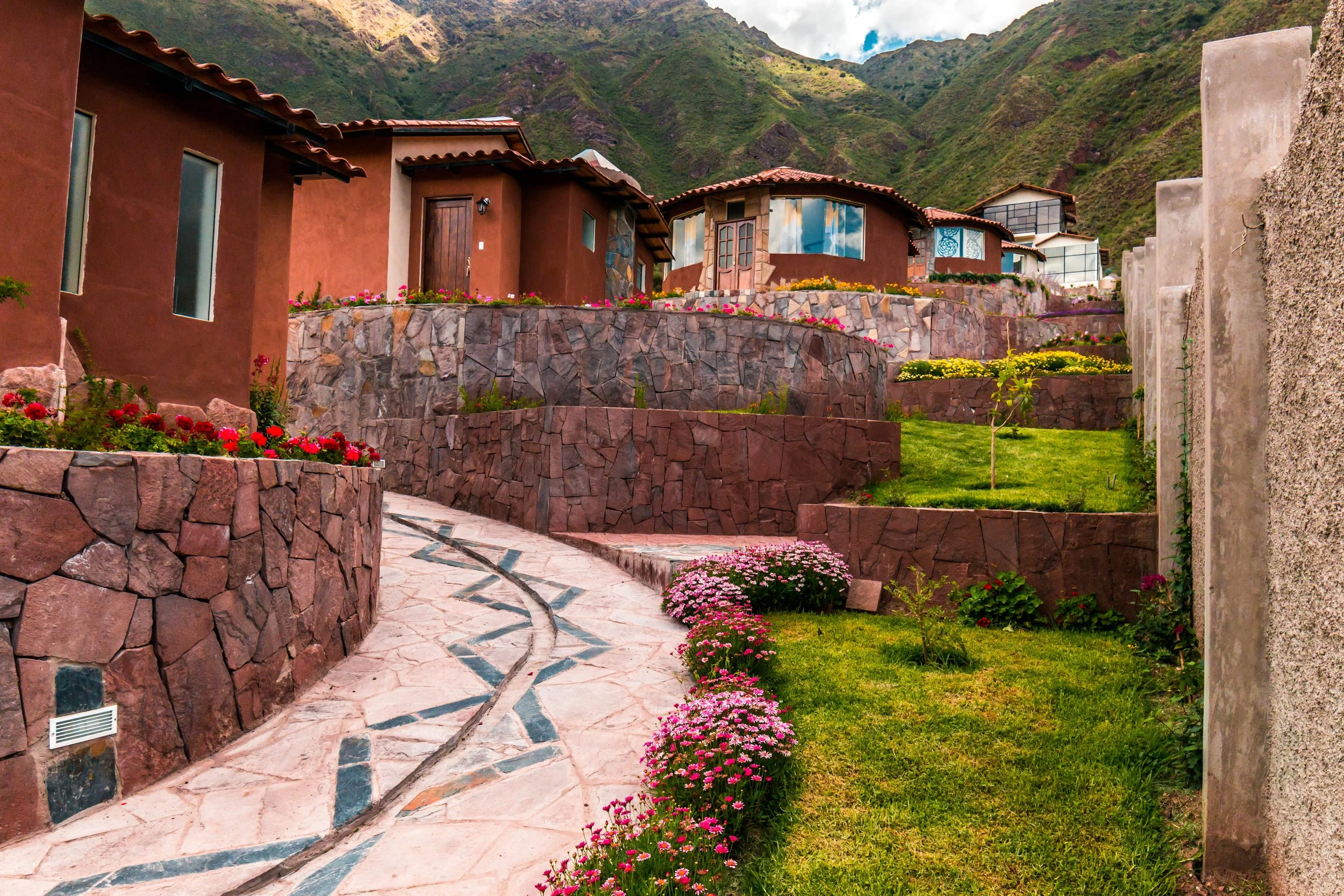 small terrace overlooking the property and the Sacred Valley Mountains